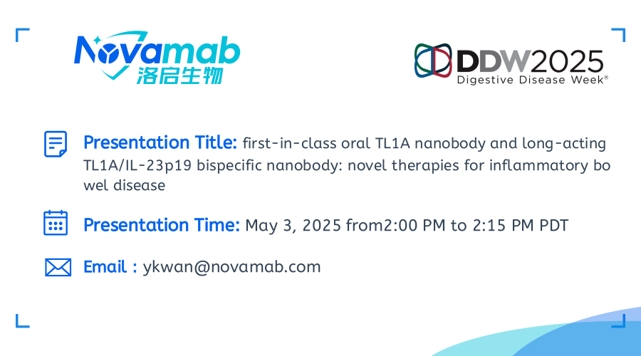PA视讯官网生物将携口服TL1A纳米抗体及长效TL1A双特异性抗体出席DDW 2025会议